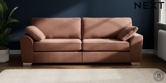7.2.6 Buy Stamford 4 Seater Sofa Relaxed Linen Look Light Rust Brown Large Square Angle - Chrome Metal from the Next UK online shop Click here to use our accessible website