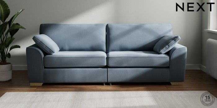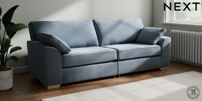7.2.10 Buy Stamford 4 Seater Sofa Relaxed Linen Look Mid Blue Large Square Angle - Light from the Next UK online shop Click here to use our accessible website