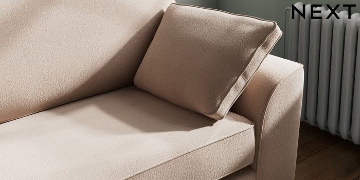 7.2.10 Buy Stamford 4 Seater Sofa Relaxed Linen Look Mid Natural Large Square Angle - Brushed Brass from the Next UK online shop Click here to use our accessible website