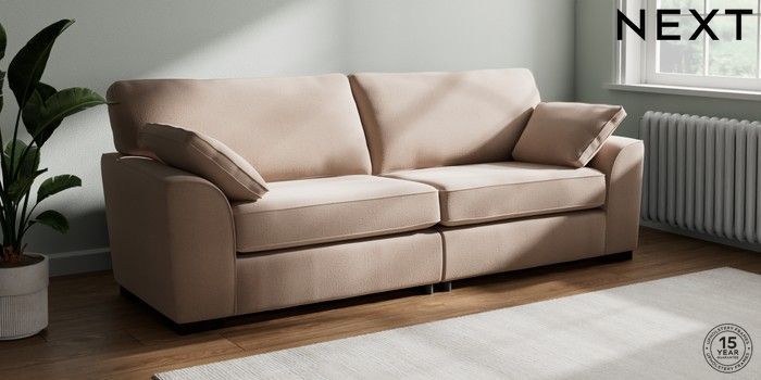 7.2.10 Buy Stamford 4 Seater Sofa Relaxed Linen Look Mid Natural Large Square Angle - Dark from the Next UK online shop Click here to use our accessible website