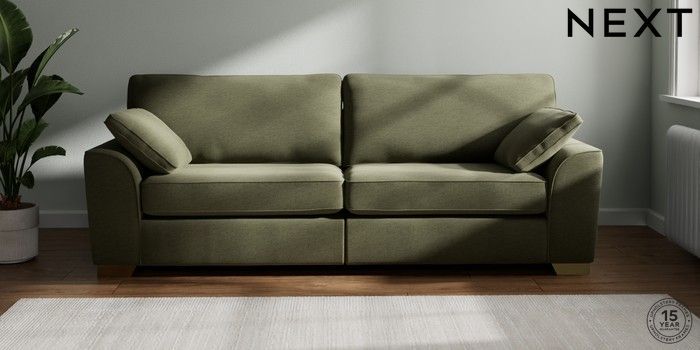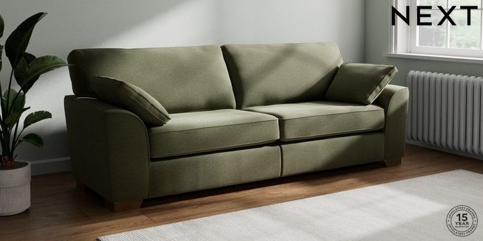 7.2.10 Buy Stamford 4 Seater Sofa Ripple Chenille Mid Moss Green Large Square Angle - Brushed Brass from the Next UK online shop Click here to use our accessible website