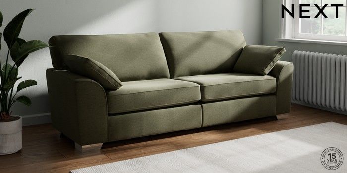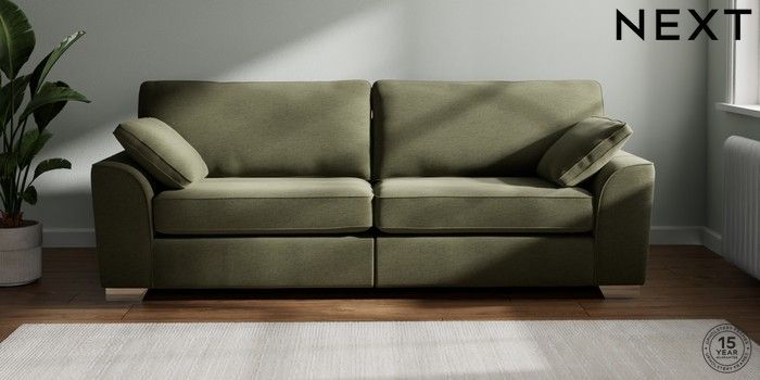 7.2.10 Buy Stamford 4 Seater Sofa Ripple Chenille Mid Moss Green Large Square Angle - Chrome Metal from the Next UK online shop Click here to use our accessible website