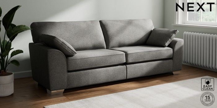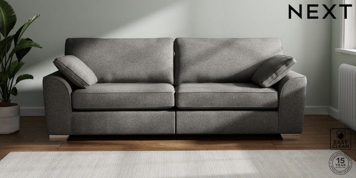 7.2.10 Buy Stamford 4 Seater Sofa Tweedy Blend Easy Clean Dark Grey Large Square Angle - Chrome Metal from the Next UK online shop Click here to use our accessible website