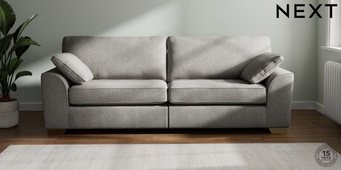 7.2.6 Buy Stamford 4 Seater Sofa Tweedy Chenille Mid Grey Large Square Angle - Brushed Brass from the Next UK online shop Click here to use our accessible website