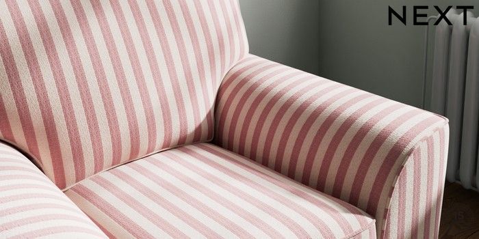 7.3.1 Buy Stamford Armchair Bold Chenille Stripe Dark Pink Square Angle - Brushed Brass from the Next UK online shop Click here to use our accessible website