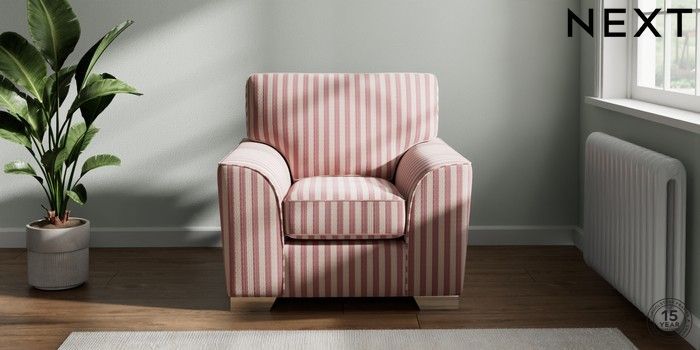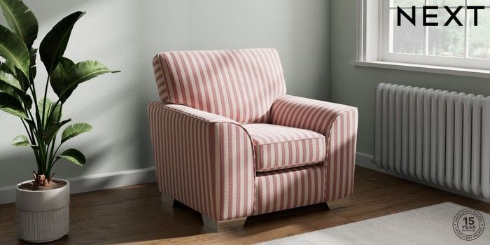 7.3.1 Buy Stamford Armchair Bold Chenille Stripe Dark Pink Square Angle - Chrome Metal from the Next UK online shop Click here to use our accessible website
