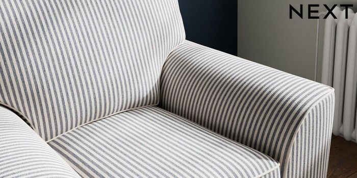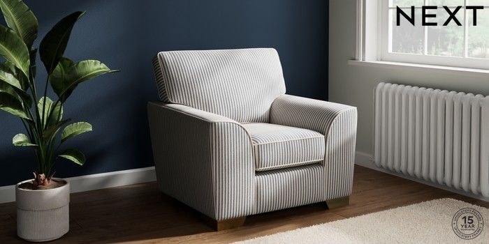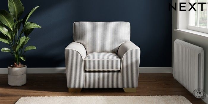 7.3.1 Buy Stamford Armchair Chenille Stripe Slate Blue Square Angle - Brushed Brass from the Next UK online shop Click here to use our accessible website