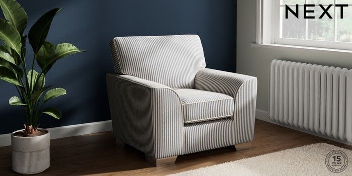 7.3.1 Buy Stamford Armchair Chenille Stripe Slate Blue Square Angle - Chrome Metal from the Next UK online shop Click here to use our accessible website