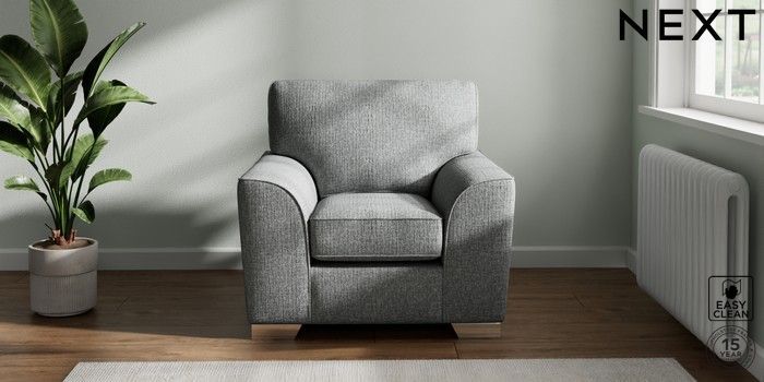 7.3.1 Buy Stamford Armchair Chunky Boucle Easy Clean Mid Grey Square Angle - Chrome Metal from the Next UK online shop Click here to use our accessible website