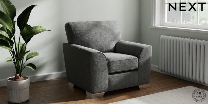 7.2.10 Buy Stamford Armchair Chunky Texture Dark Grey Square Angle - Chrome Metal from the Next UK online shop Click here to use our accessible website