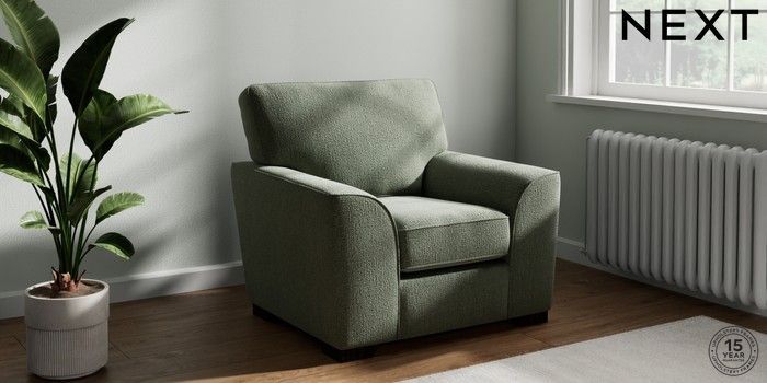 7.2.10 Buy Stamford Armchair Chunky Texture Mid Forest Green Square Angle - Dark from the Next UK online shop Click here to use our accessible website