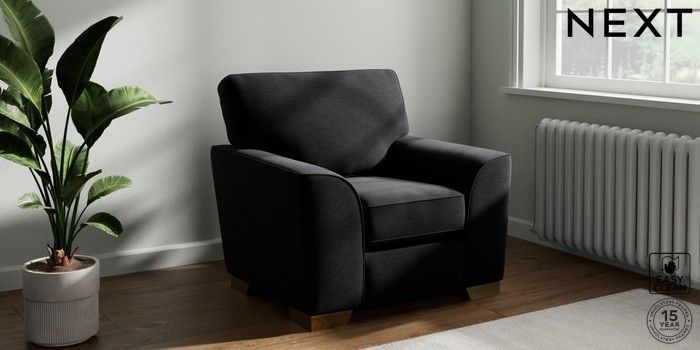 7.2.10 Buy Stamford Armchair Fine Chenille Easy Clean Black Square Angle - Brushed Brass from the Next UK online shop Click here to use our accessible website