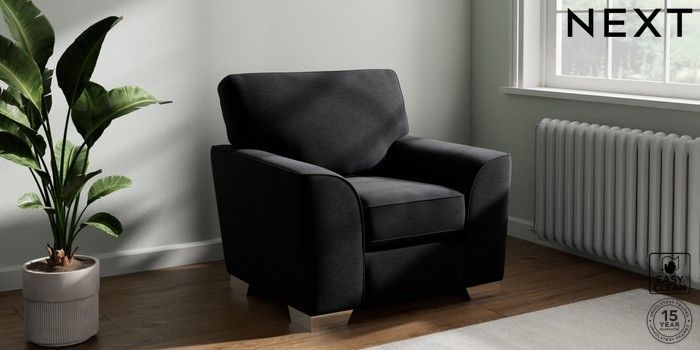 7.3.1 Buy Stamford Armchair Fine Chenille Easy Clean Black Square Angle - Chrome Metal from the Next UK online shop Click here to use our accessible website