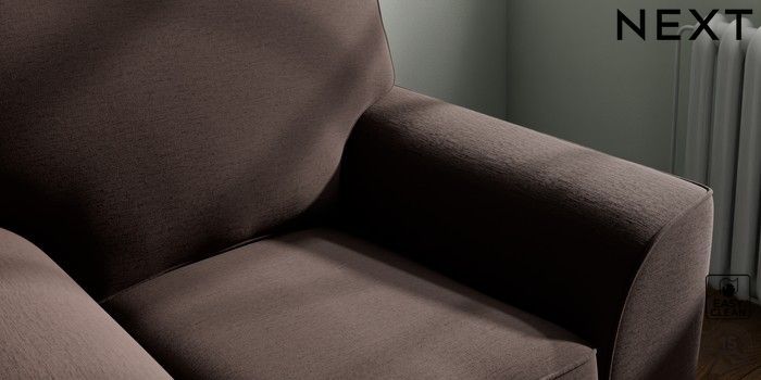 7.3.1 Buy Stamford Armchair Fine Chenille Easy Clean Chocolate Brown Square Angle - Brushed Brass from the Next UK online shop Click here to use our accessible website