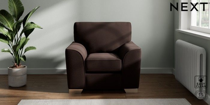 7.3.1 Buy Stamford Armchair Fine Chenille Easy Clean Chocolate Brown Square Angle - Chrome Metal from the Next UK online shop Click here to use our accessible website