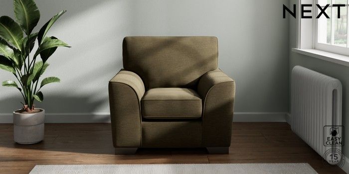 7.3.1 Buy Stamford Armchair Fine Chenille Easy Clean Dark Moss Green Square Angle - Gunmetal from the Next UK online shop Click here to use our accessible website