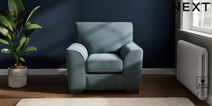 7.3.1 Buy Stamford Armchair Fine Chenille Easy Clean Mid Blue Square Angle - Gunmetal from the Next UK online shop Click here to use our accessible website