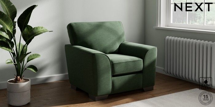 7.3.1 Buy Stamford Armchair Fine Chenille Easy Clean Mid Khaki Green Square Angle - Gunmetal from the Next UK online shop Click here to use our accessible website
