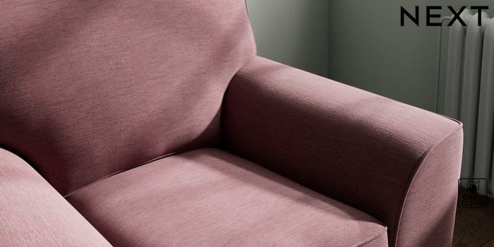 7.3.1 Buy Stamford Armchair Fine Chenille Easy Clean Mid Mulberry Purple Square Angle - Brushed Brass from the Next UK online shop Click here to use our accessible website