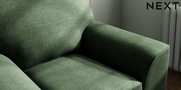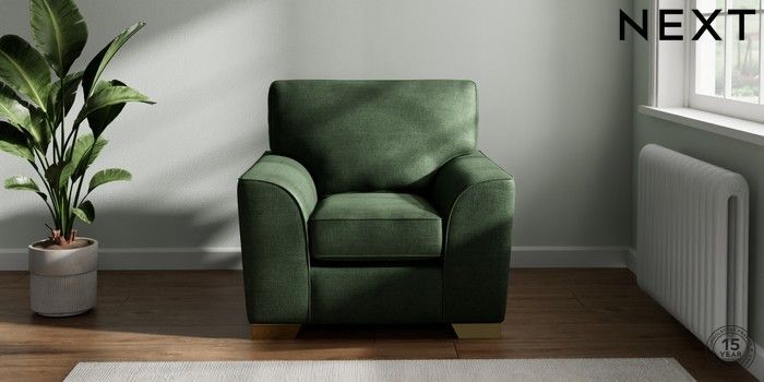 7.2.10 Buy Stamford Armchair Luxe Chenille Dark Green Square Angle - Brushed Brass from the Next UK online shop Click here to use our accessible website