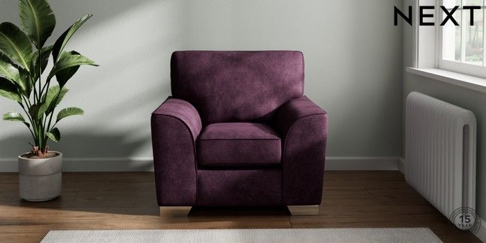 7.3.1 Buy Stamford Armchair Plush Chenille Dark Plum Purple Square Angle - Chrome Metal from the Next UK online shop Click here to use our accessible website