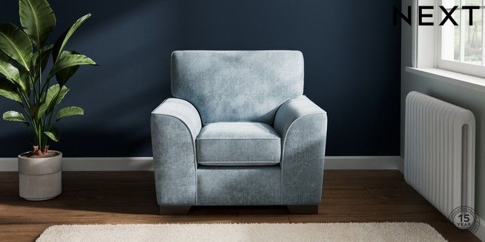 7.2.6 Buy Stamford Armchair Plush Chenille Light Blue Square Angle - Gunmetal from the Next UK online shop Click here to use our accessible website