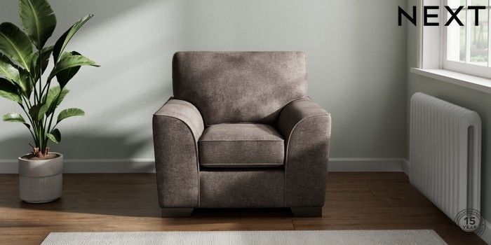 7.3.1 Buy Stamford Armchair Plush Chenille Mink Brown Square Angle - Gunmetal from the Next UK online shop Click here to use our accessible website
