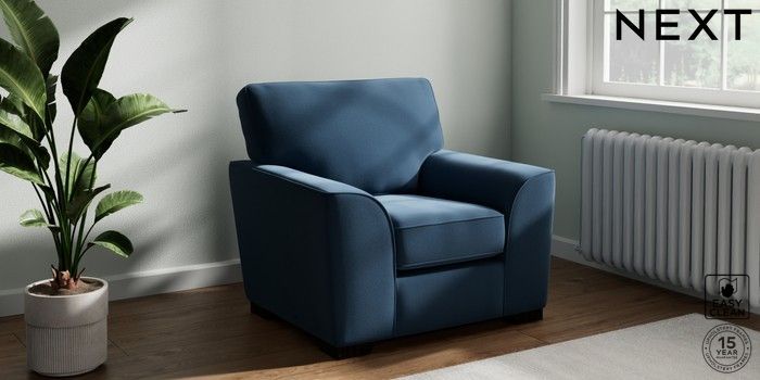7.3.1 Buy Stamford Armchair Plush Velvet Easy Clean Airforce Blue Square Angle - Dark from the Next UK online shop Click here to use our accessible website