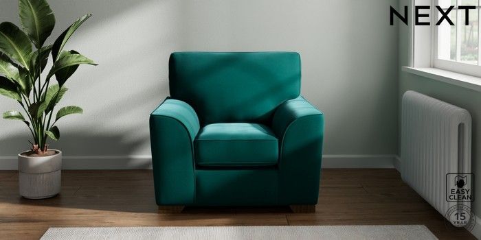 7.2.6 Buy Stamford Armchair Plush Velvet Easy Clean Juniper Green Square Angle - Mid from the Next UK online shop Click here to use our accessible website