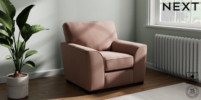 7.2.10 Buy Stamford Armchair Plush Velvet Easy Clean Mid Natural Square Angle - Dark from the Next UK online shop Click here to use our accessible website