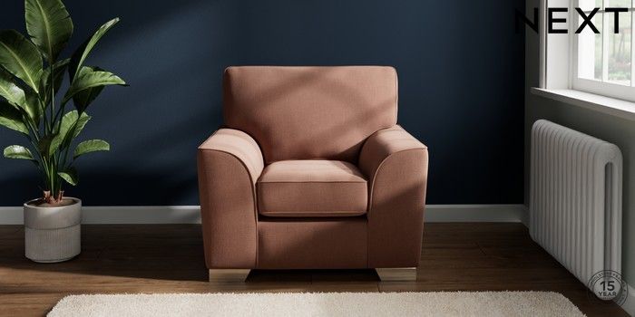 6.12.1 Buy Stamford Armchair Relaxed Linen Look Light Rust Brown Square Angle - Chrome Metal from the Next UK online shop Click here to use our accessible website