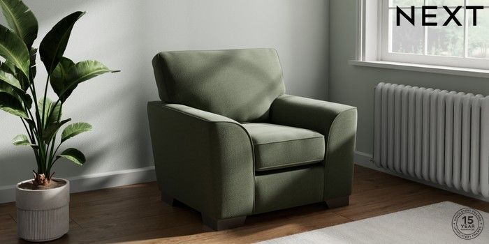 7.3.1 Buy Stamford Armchair Relaxed Linen Look Dark Green Square Angle - Gunmetal from the Next UK online shop Click here to use our accessible website