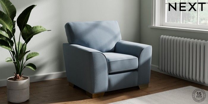 7.3.1 Buy Stamford Armchair Relaxed Linen Look Mid Blue Square Angle - Brushed Brass from the Next UK online shop Click here to use our accessible website