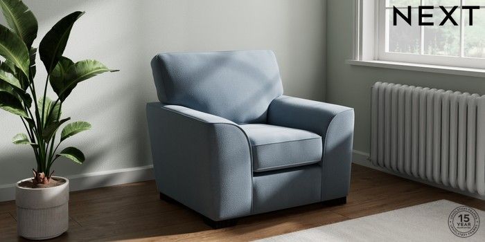 7.2.10 Buy Stamford Armchair Relaxed Linen Look Mid Blue Square Angle - Dark from the Next UK online shop Click here to use our accessible website