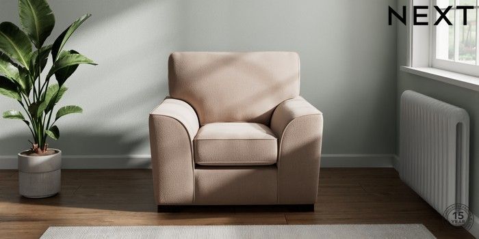 7.2.10 Buy Stamford Armchair Relaxed Linen Look Mid Natural Square Angle - Dark from the Next UK online shop Click here to use our accessible website