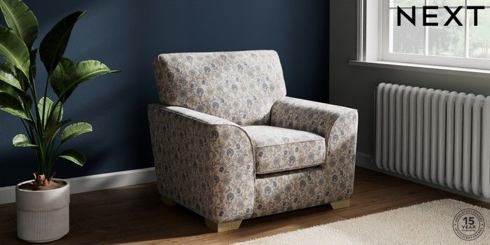 7.3.1 Buy Stamford Armchair Relaxed Linen Look Print Woodblock Floral Blue Square Angle - Light from the Next UK online shop Click here to use our accessible website
