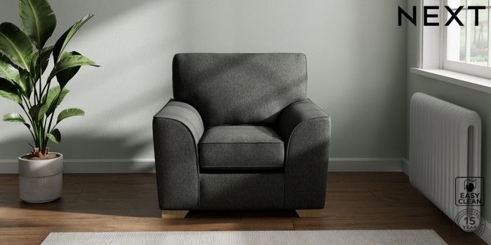 7.3.1 Buy Stamford Armchair Tweedy Blend Easy Clean Charcoal Grey Square Angle - Light from the Next UK online shop Click here to use our accessible website