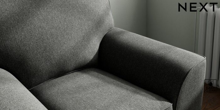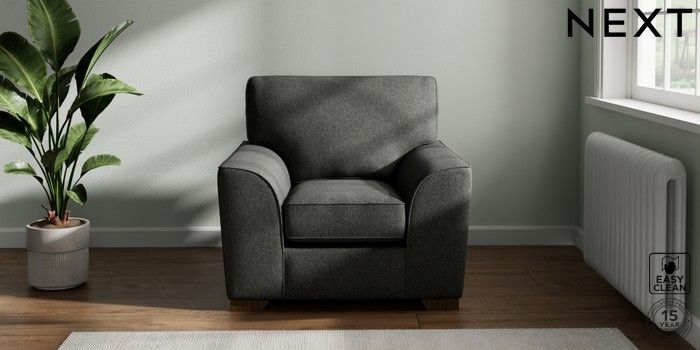 7.3.1 Buy Stamford Armchair Tweedy Blend Easy Clean Charcoal Grey Square Angle - Mid from the Next UK online shop Click here to use our accessible website