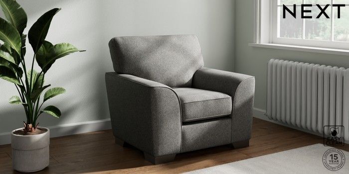 7.3.1 Buy Stamford Armchair Tweedy Blend Easy Clean Dark Grey Square Angle - Gunmetal from the Next UK online shop Click here to use our accessible website