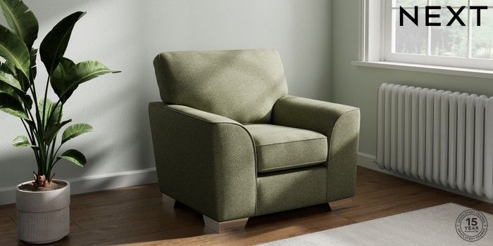 7.3.1 Buy Stamford Armchair Tweedy Chenille Mid Moss Green Square Angle - Chrome Metal from the Next UK online shop Click here to use our accessible website