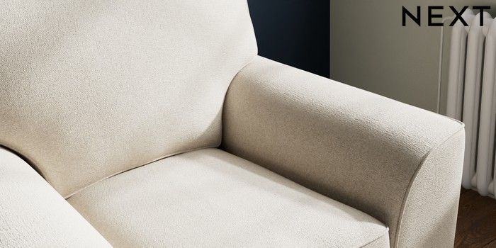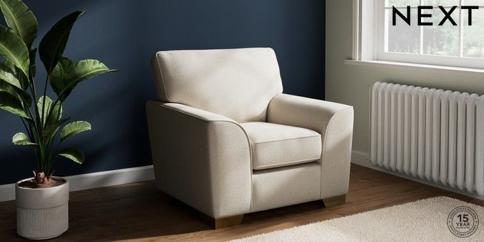 7.3.1 Buy Stamford Armchair Tweedy Chenille Oyster Square Angle - Brushed Brass from the Next UK online shop Click here to use our accessible website