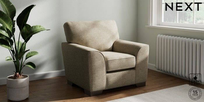 7.3.1 Buy Stamford Armchair Woven Chenille Easy Clean Mid Natural Square Angle - Gunmetal from the Next UK online shop Click here to use our accessible website