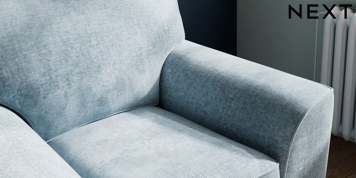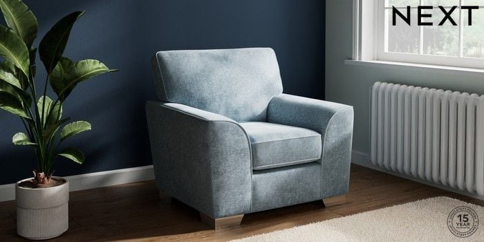 7.2.6 Buy Stamford Armchair Plush Chenille Light Blue Square Angle - Chrome Metal from the Next UK online shop Click here to use our accessible website