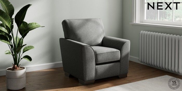 6.12.13 Buy Stamford Small Armchair Tweedy Chenille Dark Grey Square Angle - Gunmetal from the Next UK online shop Click here to use our accessible website