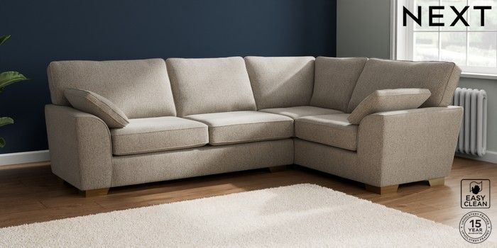 7.2.10 Buy Stamford Large Corner Sofa - Right Hand Chunky Boucle Easy Clean Dove Large Square Angle - Brushed Brass from the Next UK online shop Click here to use our accessible website