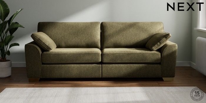 7.2.6 Buy Stamford 4 Seater Sofa Cotswold Chenille Dark Green Large Square Angle - Brushed Brass from the Next UK online shop Click here to use our accessible website