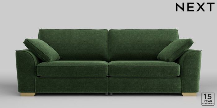 6.12.1 Buy Stamford Small Sofa Chaise - Right Hand Luxe Chenille Dark Green Large Square Angle - Brushed Brass from the Next UK online shop Click here to use our accessible website