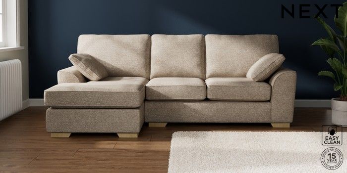 7.2.10 Buy Stamford Medium Sofa Chaise - Left Hand Chunky Boucle Easy Clean Mid Natural Large Square Angle - Light from the Next UK online shop Click here to use our accessible website