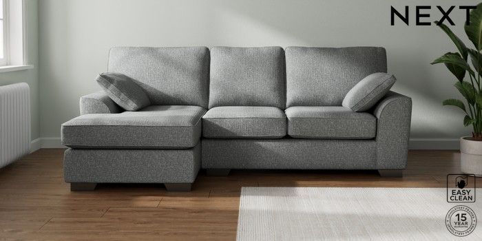 7.2.6 Buy Stamford Medium Sofa Chaise - Left Hand Chunky Boucle Easy Clean Mid Grey Large Square Angle - Gunmetal from the Next UK online shop Click here to use our accessible website