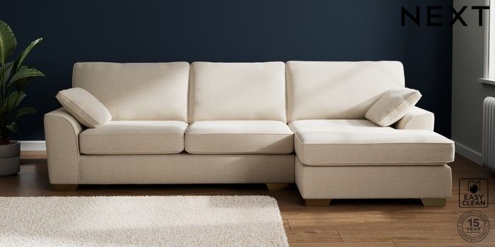 7.2.10 Buy Stamford Large Sofa Chaise - Right Hand Fine Chenille Easy Clean Oyster Large Square Angle - Brushed Brass from the Next UK online shop Click here to use our accessible website
